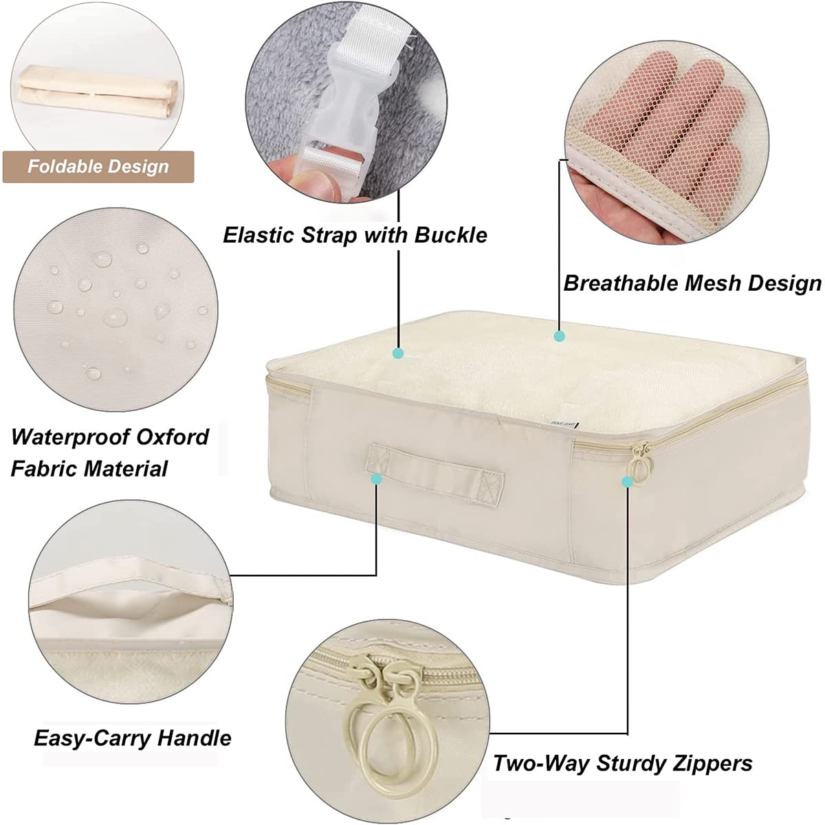 - All the compact suitcase organizer cubes can be folded and stored in the largest one, and only a small space in your wardrobe is needed to be ready for your next trip. If you are not satisfied with our packing cubes for suitcases, or in the unlikely case of defects, please contact the seller immediately for replacement. Please don't worry. We will do our best to solve any problem you may have with any of our products